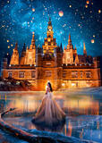 Картина по номерам «Девушка в платье идет к светящемуся замку» 40x50 см